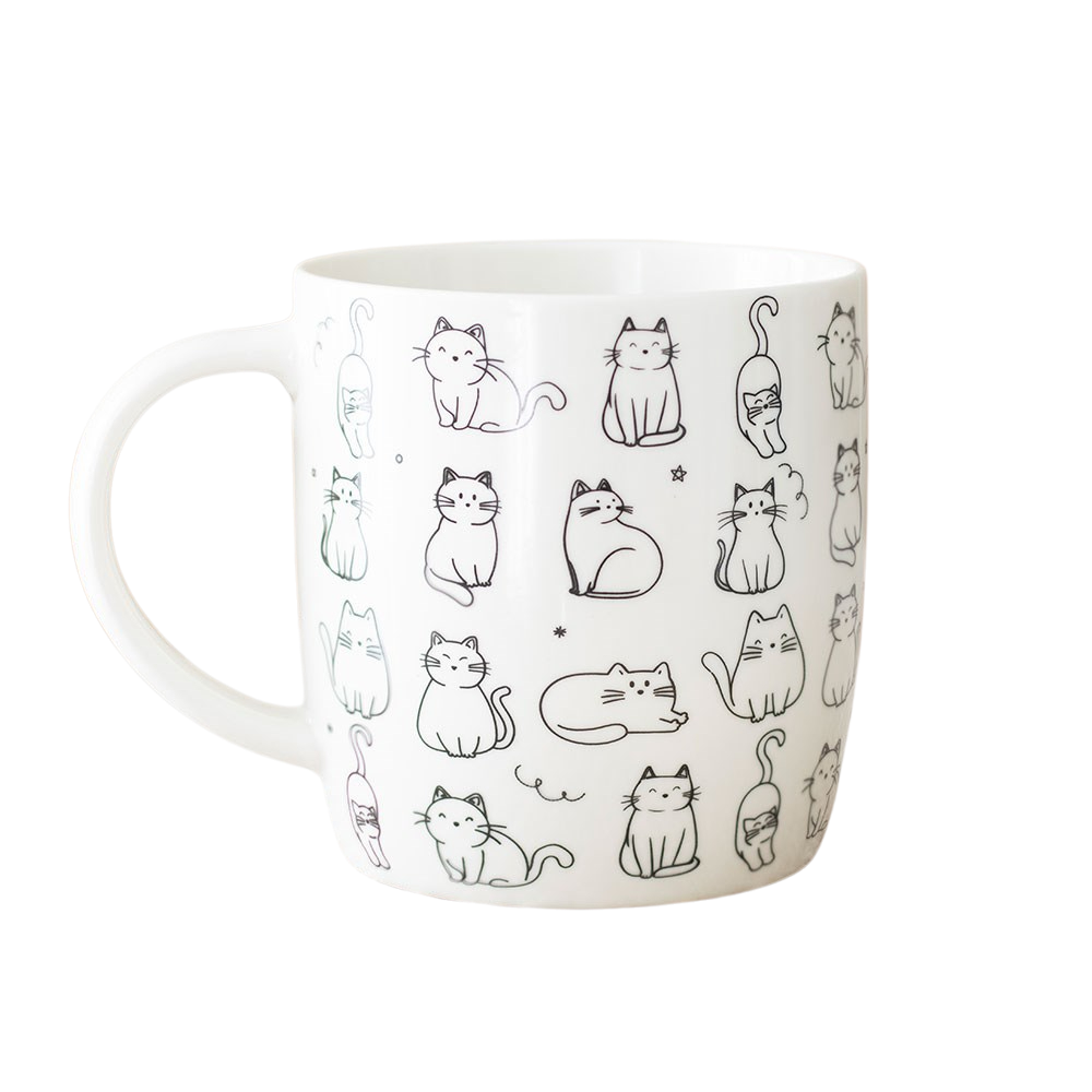 Recouverte d'un motif joyeux de chats dessinés, cette tasse apporte une touche de plaisir félin à chaque pause thé ou café. Un cadeau parfait pour les amoureux des chats qui apprécient leur boisson avec une touche de mignonnerie 🐈